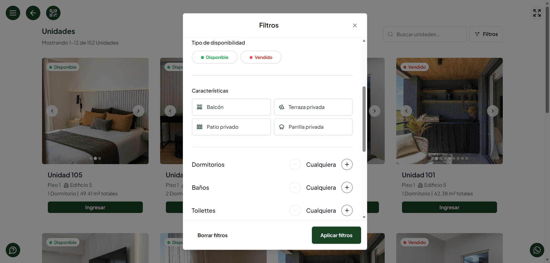 Sección unica que permite buscar la unidad ideal de tu cliente mediante decenas de filtros personalizados.