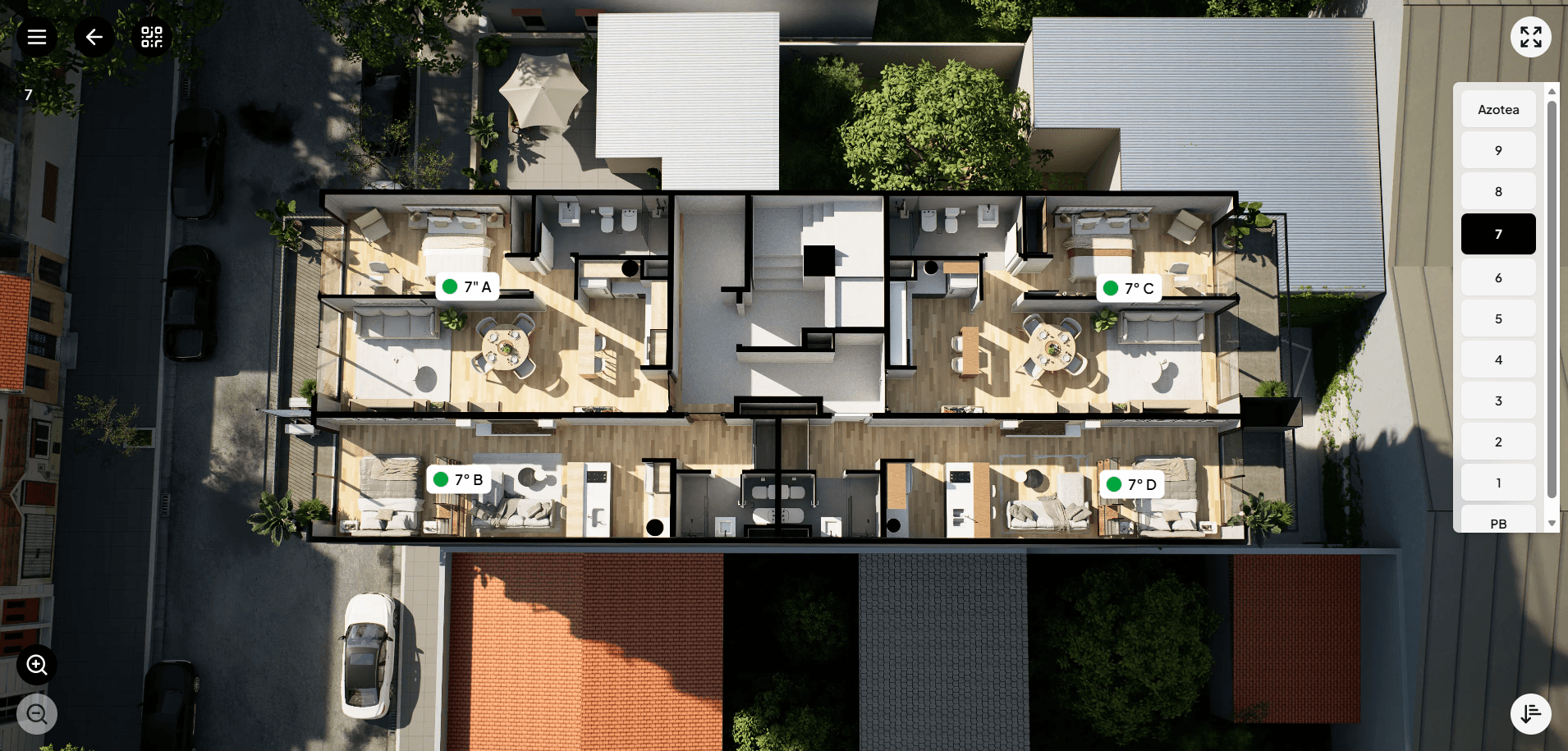 Recorré el Showroom desde el exterior, piso por piso, hasta encontrar la unidad de tu interés.