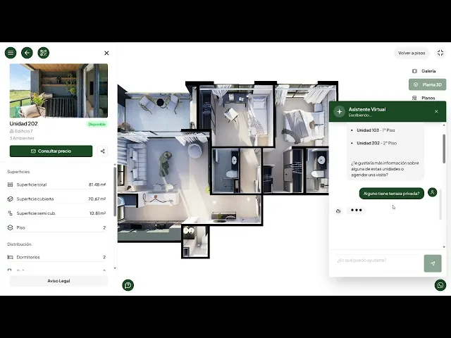 Creamos recorridos 360° que permiten a los clientes explorar cada unidad o amenitie de manera interactiva.